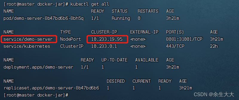 kubectl get all或kubectl get node如下图我们的demo-server已经启动了,但是如何访问成了一个问题