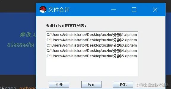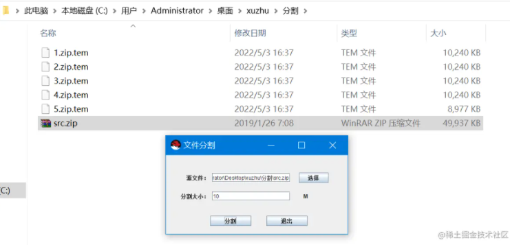 这个在进行分割处理时就有考虑设计了,切割的文件名是以1.zip.tem,前面的是切割排序号,中间的是源文件的文件类型后缀,最后是切割文件后缀。