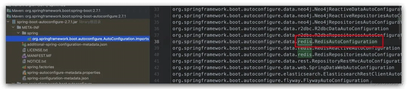 一旦被装载到 IoC 容器中过后,我们在后续就可以通过 @Autowired 来进行使用了。接下来我们看下 selectImports 方法里面的实现,当中引用了 getCandidateConfigurations 方法 ,其中的 ImportCandidates.load 方法我们可以看到是通过加载 String location = String.format("META-INF/spring/%s.imports", annotation.getName()); 对应路径下的 org.springframework.boot.autoconfigure.AutoConfiguration.imports 文件,其中就包含了很多自动装配的配置类。