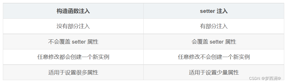 九、依赖注入的方式,构造器依赖注入和 Setter方法注入的区别