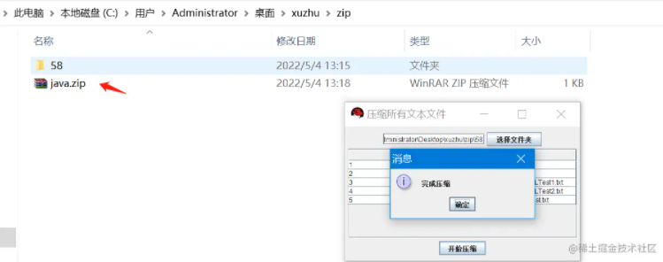压缩文件会放在选择文件夹的同级目录,并以java.zip命名。