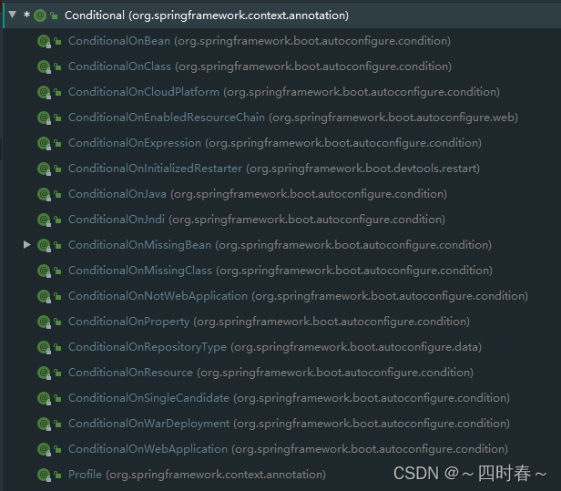 ConditionalOnBean:当容器中存在指定的bean组件时才干某些事情ConditionalOnMissingBean:当容器中不存在指定的bean组件时才干某些事情ConditionalOnClass:当容器中有某个类时才干某些事情ConditionalOnResource:当项目的类路径存在某个资源时,才干什么事