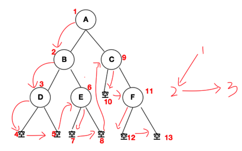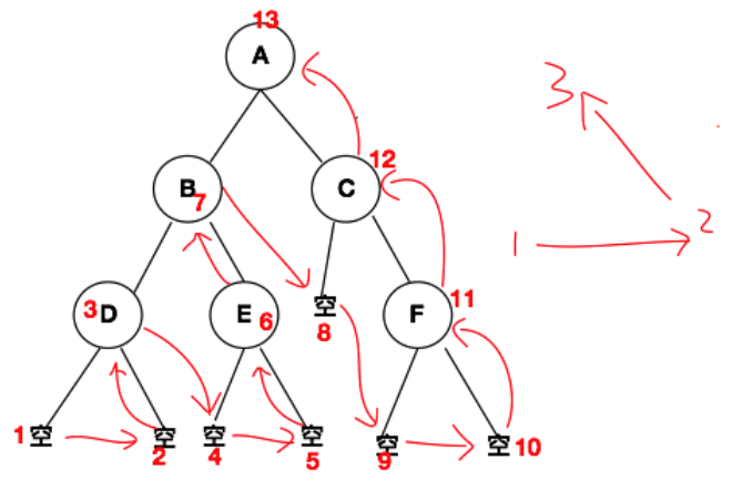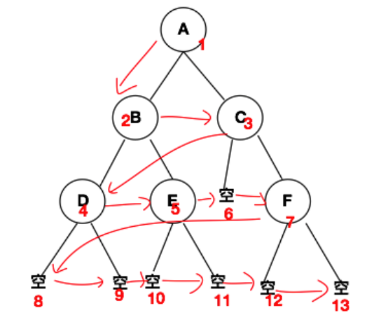 故上面先序遍历的顺序为:A B C D E # F # # # # # #
