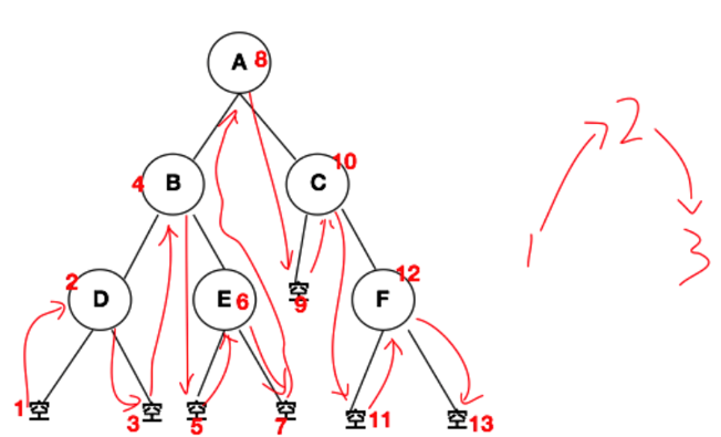 故上面先序遍历的顺序为:# D # B # E # A # C # F #