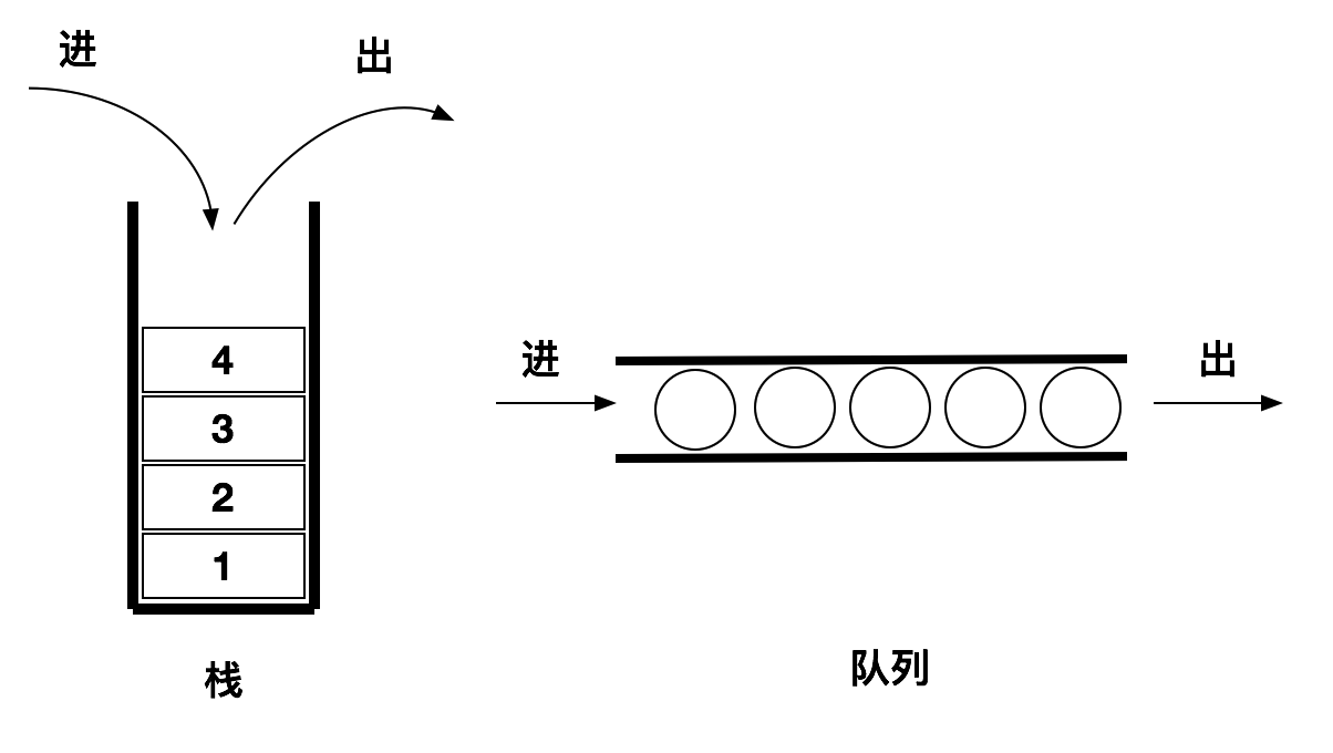 其实对于栈和队列并不需要太深入的介绍,栈和队列的核心内容是栈是先进后出、队列是先进先出。在实际开发中有些场景也可能会用到,比如 APP 中用户可以撤销操作,比如下棋 APP 中的悔棋操作,返回上一步就是先进后出(后进先出),也就是栈的特性。