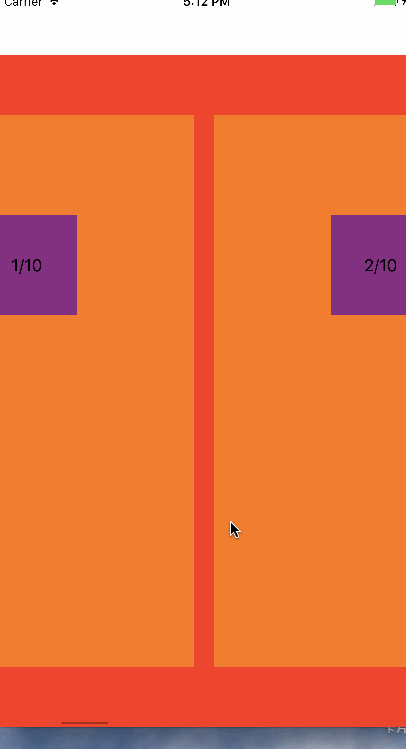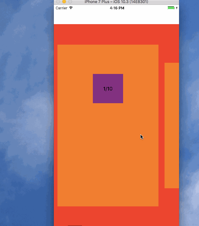 至此,我们可以得到普通的效果,左右滑动,但中间cell不会居中,两侧cell也不会缩放,如下图: