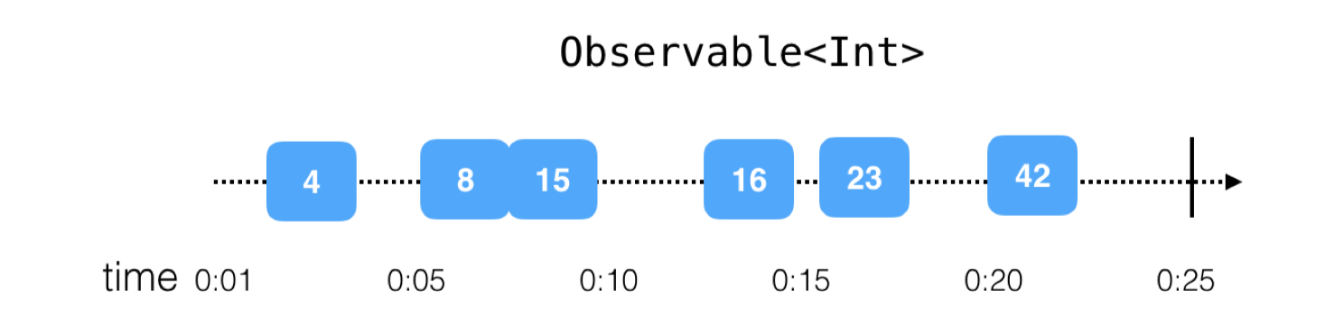 对于一个可观察的整型变量来说,异步环境下它所触发的事件可以在时间线上被描绘成这样一个事件序列: