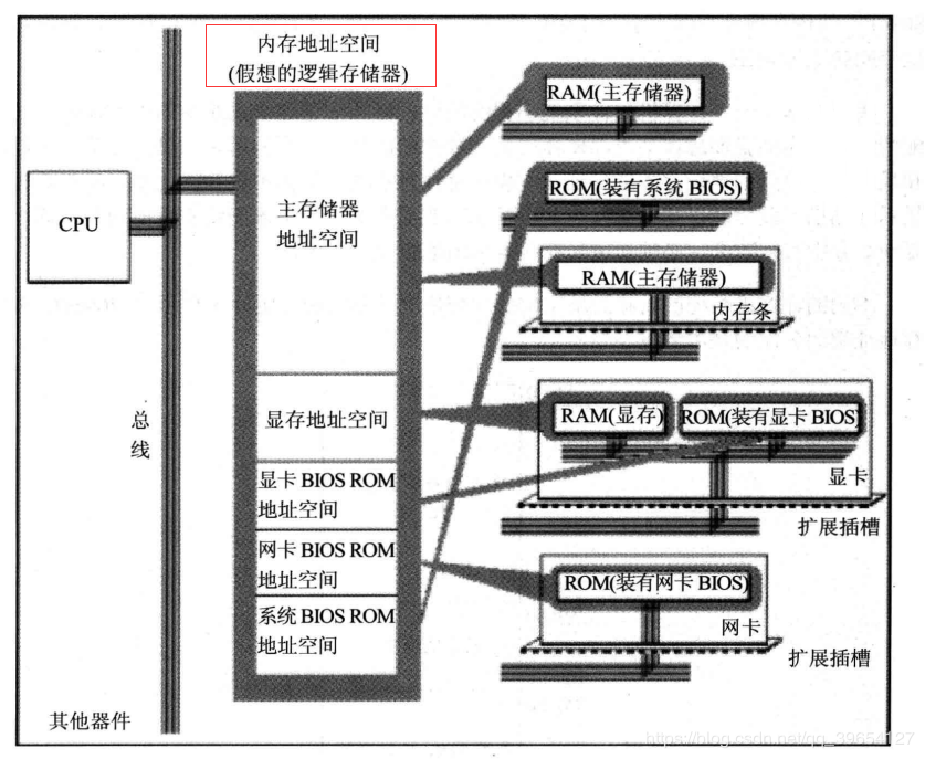 CPU将系统中各类存储器看作一个逻辑存储器,这个逻辑存储器就是我们所说的内存地址空间。