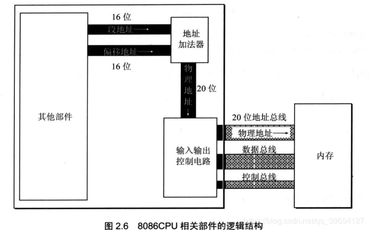 从8086CPU的内部结构来看,如果将地址从内部简单地发出,那么它只能送出16位的地址,表现出的寻址能力只有64KB。