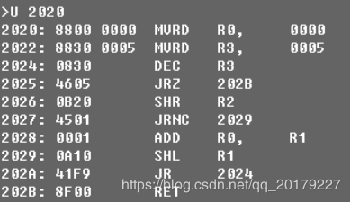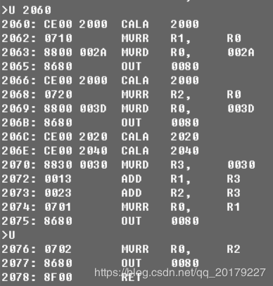 CALA ADR:MUL //调用子程序,进行两个数的运算,运算结果以十六位进制的形式存入R0