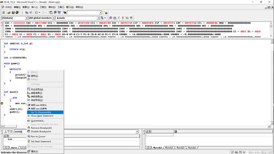 右键之后点击Go To Disassemble,也就是进入反编译界面,我们来看看反编译的代码
