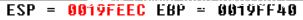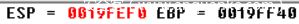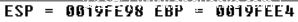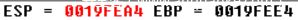 这就是咱们main函数反编译后的结果,那么现在我们记录一下ebp,esp的值,并且画出现在的堆栈图
