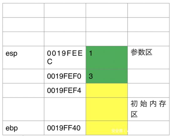 可以看到函数调用的时候首先是将3、1这两个值推入栈中,但是又有疑问了“add函数的调用是这样的add(1,3),为啥首先推入栈中的是3而不是1呢?”之所以这样是因为栈中是先进后出的,所以参数进入栈中的顺序是从右向左的,当然这里也可以看到函数中的参数是压入栈中然后取出来而不是通过通用寄存器eax,edx,ebx这些来传送参数的,其实这也好理解,因为通用寄存器只有八个,像esp,eip,ebp这样的寄存器还不能随便改,能用的也只有剩下的几个,参数超过剩下的几个咋办?那就只能用堆栈了。我们继续来看F10单步执行一下,看看堆栈的变化
