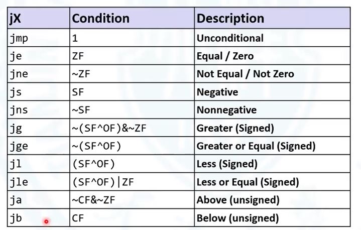 跳转指令也是一个组的指令,称为j组。其中jmp为无条件跳转,其余为条件跳转