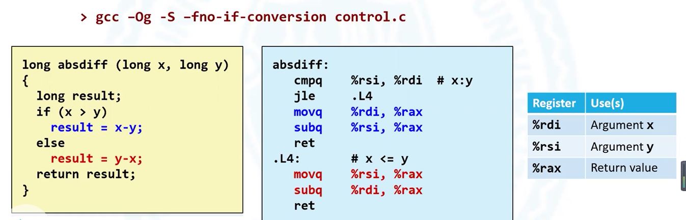 把一种情况的结果(x-y)先计算出来,放到rax寄存器;另一种同样计算出来,放到rdx寄存器;然后比较x与y大小