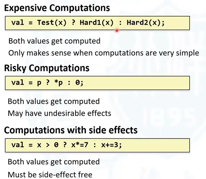 具有一些临界风险情况。如取p指针指向地址的值的操作,必须在p不为0前提下进行。而条件数据传输指令会先将两个结果计算出来,再做取舍。此时若p指针不存在,会报错