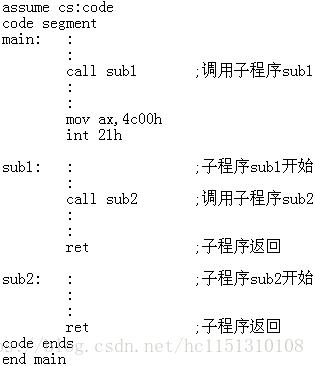 我们发现,可以写一个具有一定功能的程序段,我们称其为子程序,在需要的时候,用call指令转去执行