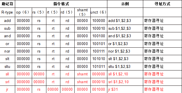 op(6位) | rs(5位) | rt(5位) | rd(5位) | shamt(5位) | funct(6位) |