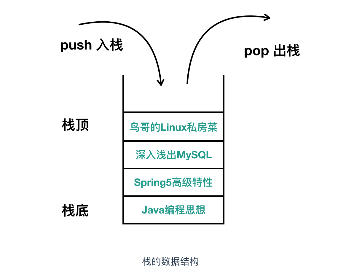 它就像一个大的收纳箱,你可以往里面放相同类型的东西,比如书,最先放进收纳箱的书在最下面,最后放进收纳箱的书在最上面,如果你想拿书的话, 必须从最上面开始取,否则是无法取出最下面的书籍的。