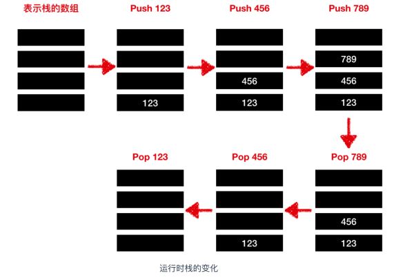入栈相当于是增加操作,出栈相当于是删除操作,只不过叫法不一样。栈和内存不同,它不需要指定元素的地址。它的大概使用如下