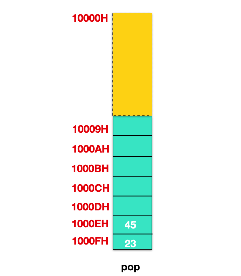 当使用 POP 指令从栈中弹出 2 个字节单元的字单元时, SP = SP + 2 ;即栈顶元素会发生变化;