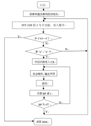 判断输入为0~9之间,将N值给BP,设置响铃延时次数CX输出N次响铃。