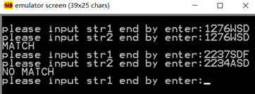DOS功能调用输入两个字符串,通过CMPSB指令一个字节一个字节比较字符串,相同输出MATCH,不同输出NO MATCH。