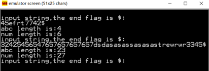 判断在0~9范围内DI累加,判断在a~z和A~Z范围内SI累加,然后将SI和DI即字母个数和数字个数分别转十进制输出。