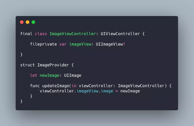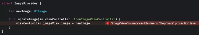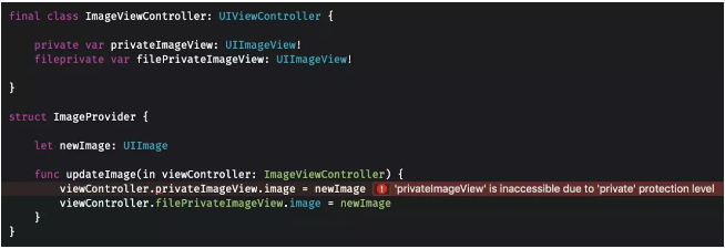 在下面的示例中,我们有一个ImageProvider和一个ImageViewController。我们可以使用fileprivate,如果它们在同一个文件中定义,并且我们希望允许在ImageProvider中访问imageView。