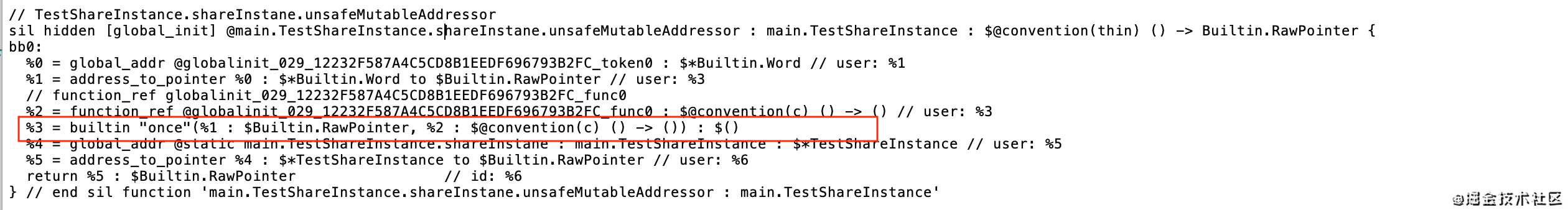 2.在get方法中获取变量调用了swift内嵌的builtin "once",实际上调用的是swift_once方法