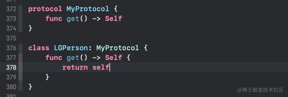 在协议声明或协议成员声明中,Self类型是指最终符合协议的类型。
