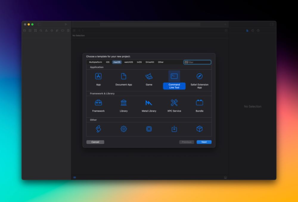 你可以使用任何你喜欢的IDE编写Swift脚本。但是如果你想要有适当的代码补全以及调试能力,你可以为其创建一个Xcode项目。为此,在 macOS 下选择 Command Line Tool 创建一个新的项目。