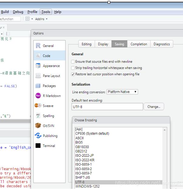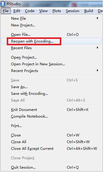 在R Studio中选择菜单栏File->Reopen with Encoding…