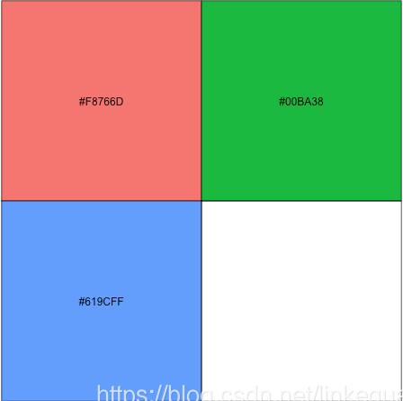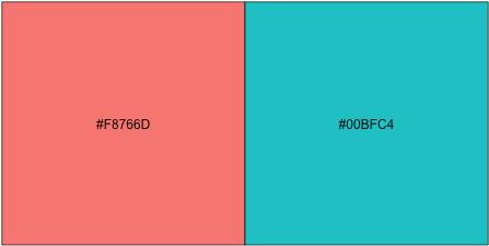# show_col(hue_pal(h = c(0, 360) + 15, c = 100, l = 65)(3)) # 和上面一样,默认设置