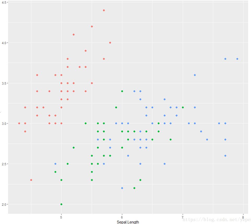 例如:ggplot(iris, aes(Sepal.Length, Sepal.Width, color = Species)),然后通过快捷散点绘制