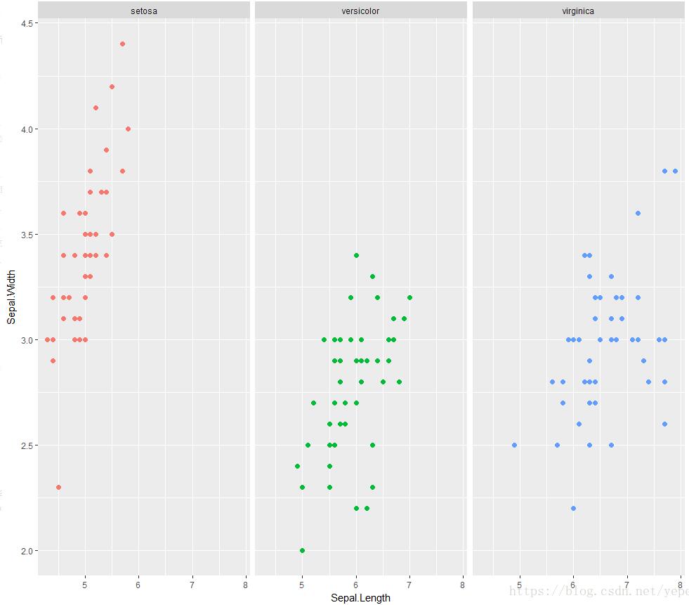 首先是可以进行分面,使得不同物种的对比效果更为显著,这里使用+facet_wrap( ~ Species),效果如下: