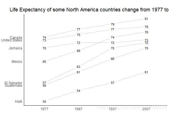 labs(title="Life Expectancy of some North America countries change from 1977 to 2007") +