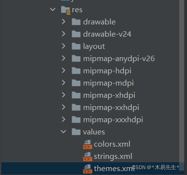 在左侧project栏中找到app/src/main/res/values/themes.xml