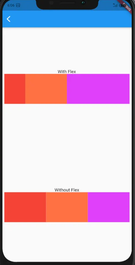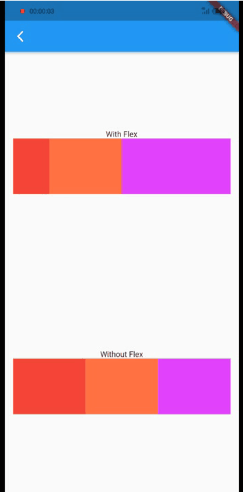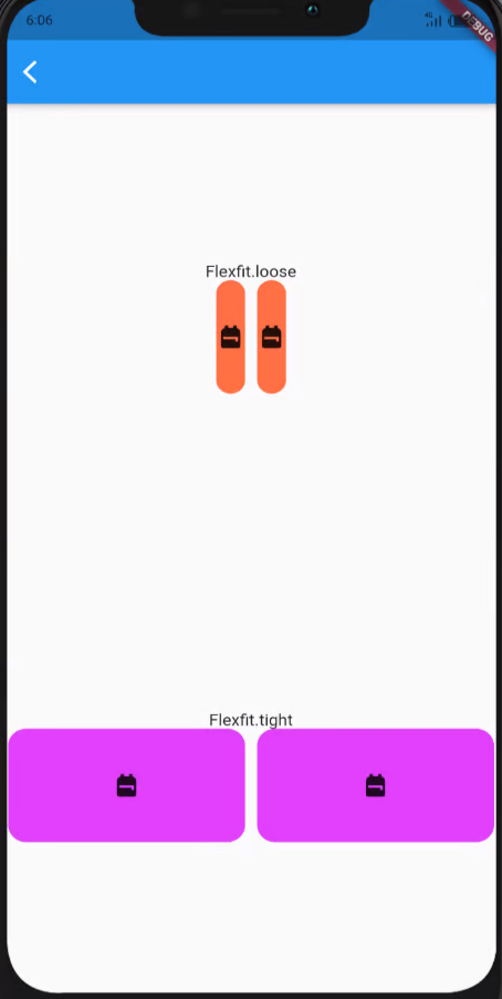 下面的图片显示了这样的布局,flexfit.loose ,使用了孩子提供的最小空间,flexfit.tight ,填补了孩子提供的可用空间。