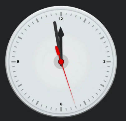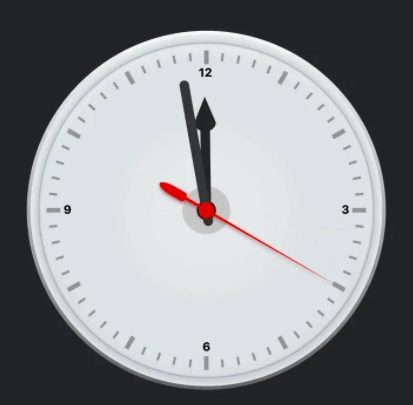 通过画布旋转实现了我们想要的效果,接下来就是让指针根据时间旋转相应的角度。可以通过 DateTime.now() 获取当前时间对象,进而获取当前的小时、分钟和秒。然后根据对应的值计算出相应的角度: