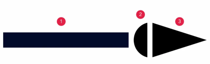 秒针分为四部分:尾部弧形、尾部圆角矩形、细针、中心圆点: