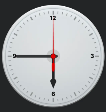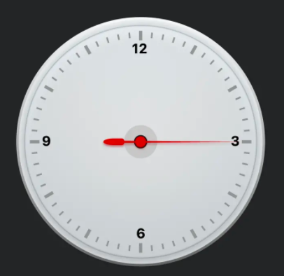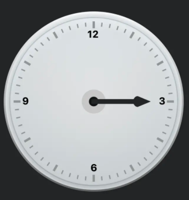 canvas.rotate(2*pi/60 * (date.second - 15));首先将 360 度分为 60 份,时针一小时为 5 份,因为角度的起始是在右侧中心点,所以获取的小时需要减 3,再加上分钟、秒钟占小时的比例;同理分别计算分钟、秒钟的角度,最终实现时针、分针、秒针根据当前时间展示。
