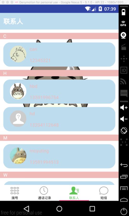 本文实例为大家分享了Android实现手机联系人分栏效果的具体代码,供大家参考,具体内容如下