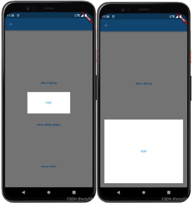 }其中show方法中使用到的Dialog默认使用material组件库的,如果觉得有不合理的尺寸约束,可替换我修改过的Dialog组件,有其他需求也可在此定制,为什么不直接放弃使用此组件?主要涉及到其路由跳转中的一些动画布局之类的。