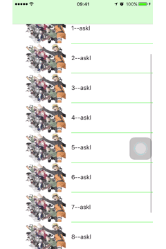 2、然后在第一个分页上添加一个 UITableView 并且设置表格能够上提加载(上拉操作即为让视图滚动到下一页)