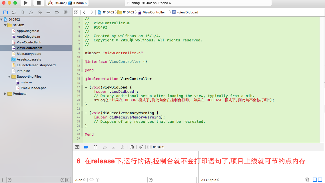 在开发IOS程序过程中,经常需要用到NSLog输出一些信息,甚至有的开发过程,必须在控制台查看输出,有经验的程序员通过控制台输出就能知道整个数据交互的一个流程。但是一个发布的程序,里面带有太多的NSLog输出,肯定对于App性能有所影响,这时候我们可以使用一个宏定义来处理,在开发的时候使用DEBUG模式,在发布的时候使用RELEASE模式。这样,发布的App就不会在程序内部做大量的NSLog输出了