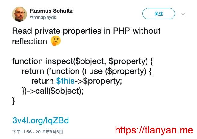 今天在推上看到一条获取PHP类私有属性的推文,感觉很有意思: