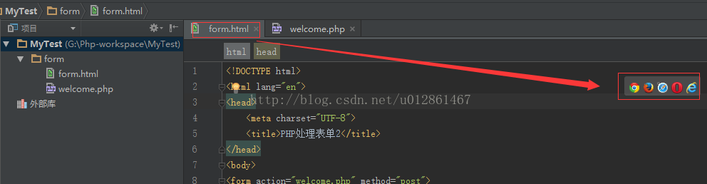 这个是可以选择打开form.html文件的浏览器,我们选择其中一个可以看看form.html文件的显示效果,其实只是一个简单的表单: