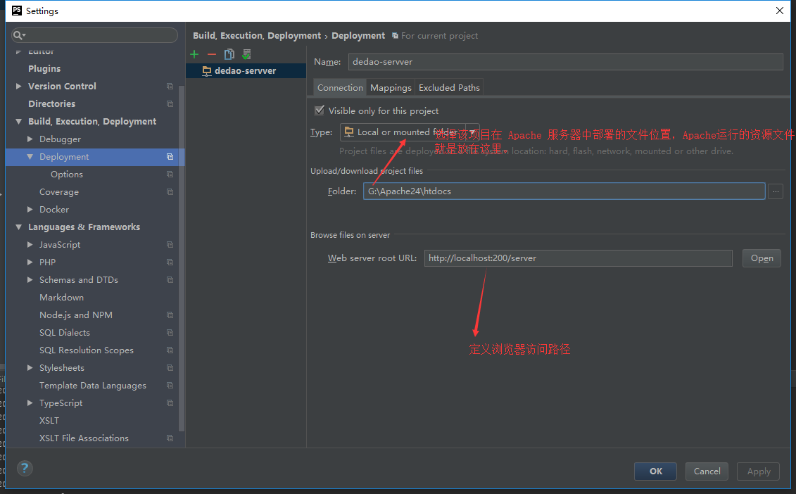 3)把项目部署到 Apache 中:File - Setting - Build,Execution,Deployment - Deployment;