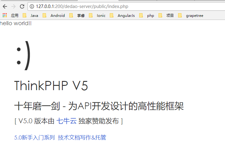 输入地址:如图所示,表示配置成功,如果不能运行,则可以查看 Apache 中的 log 日志,进行相关修改。